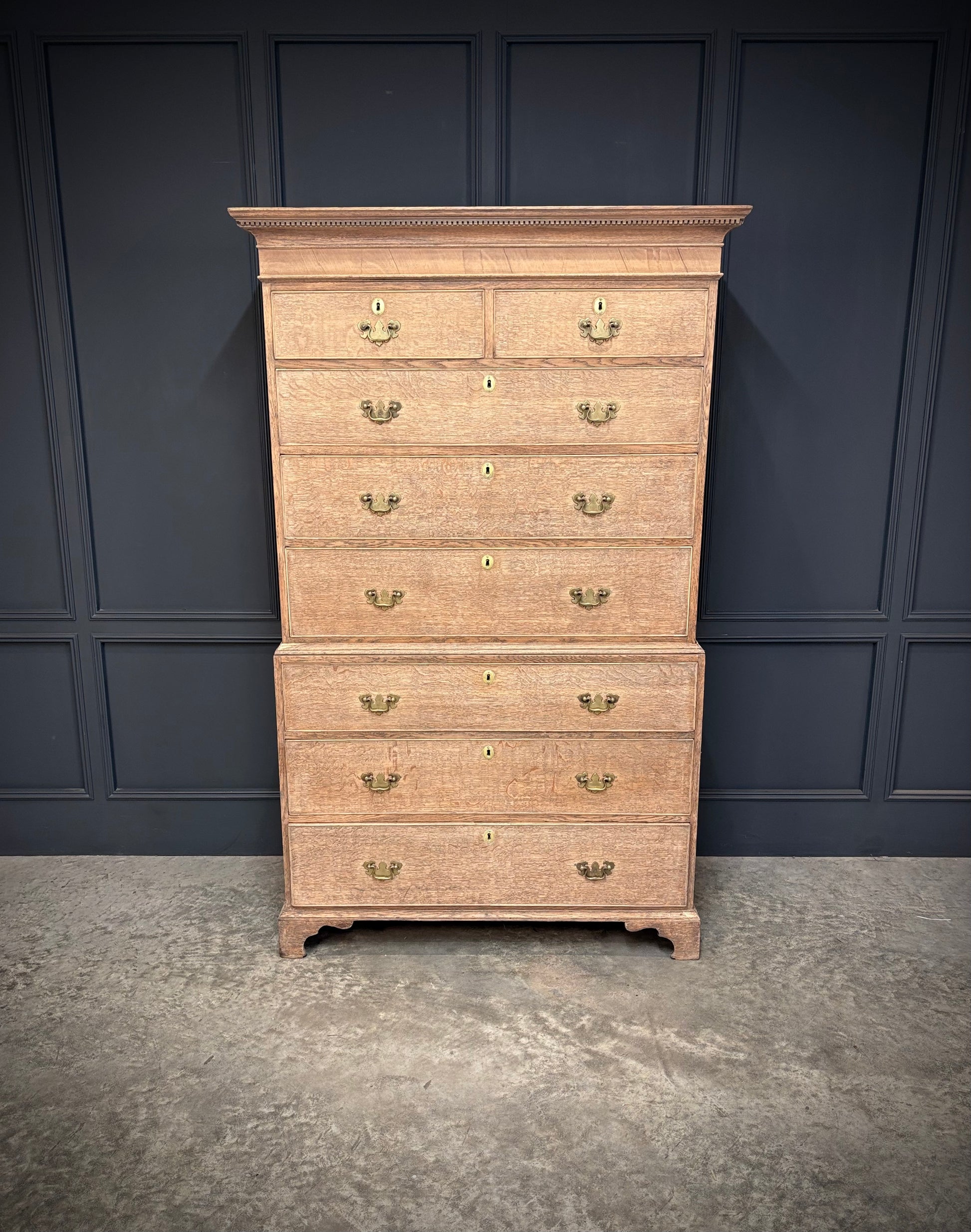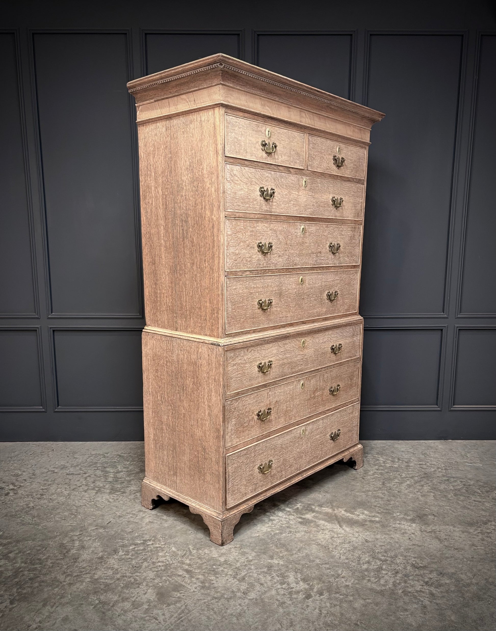 A handsome 18th-century bleached oak chest on chest, dating to around 1770.