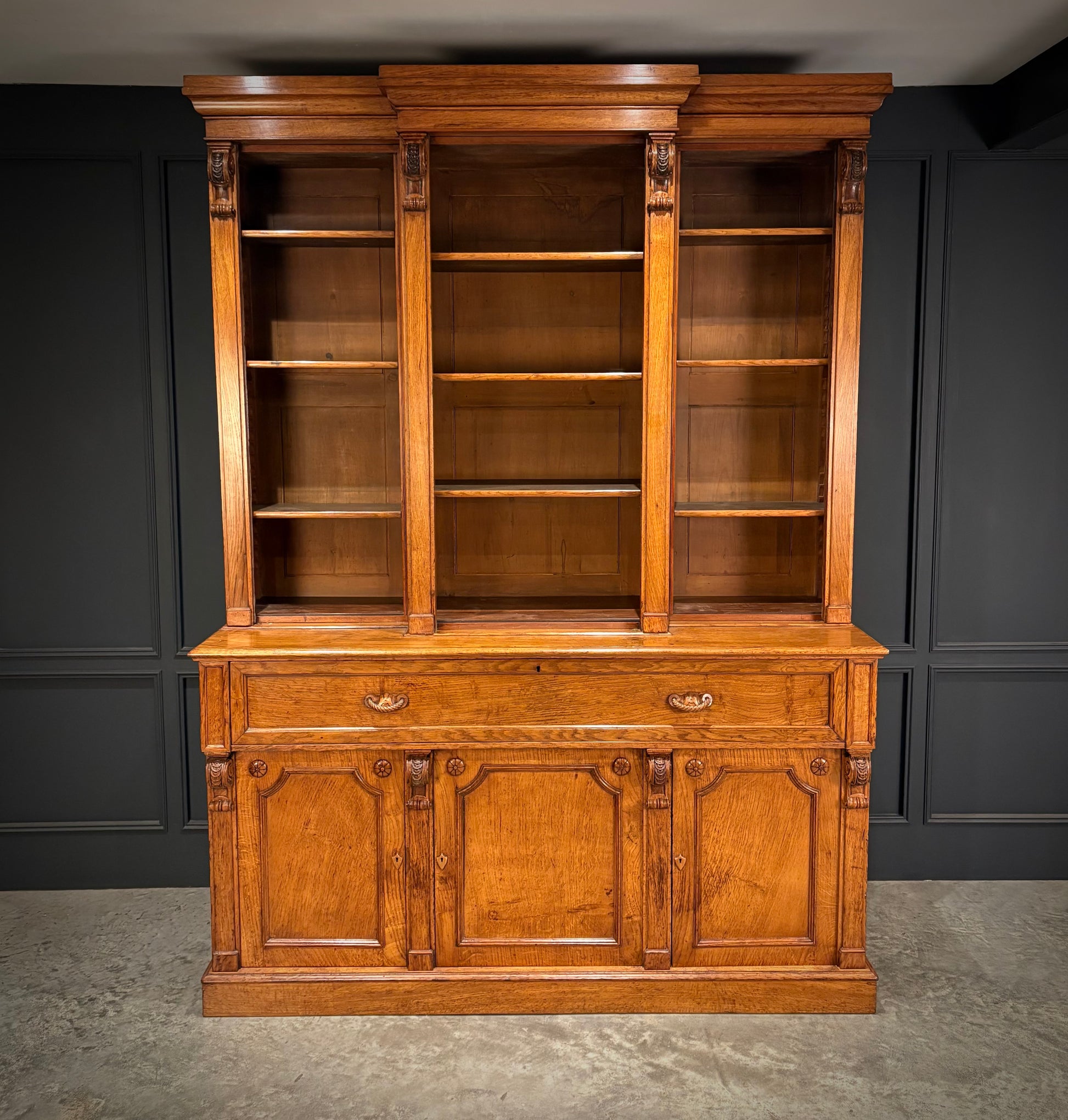 Early Victorian Breakfront Oak Bookcase