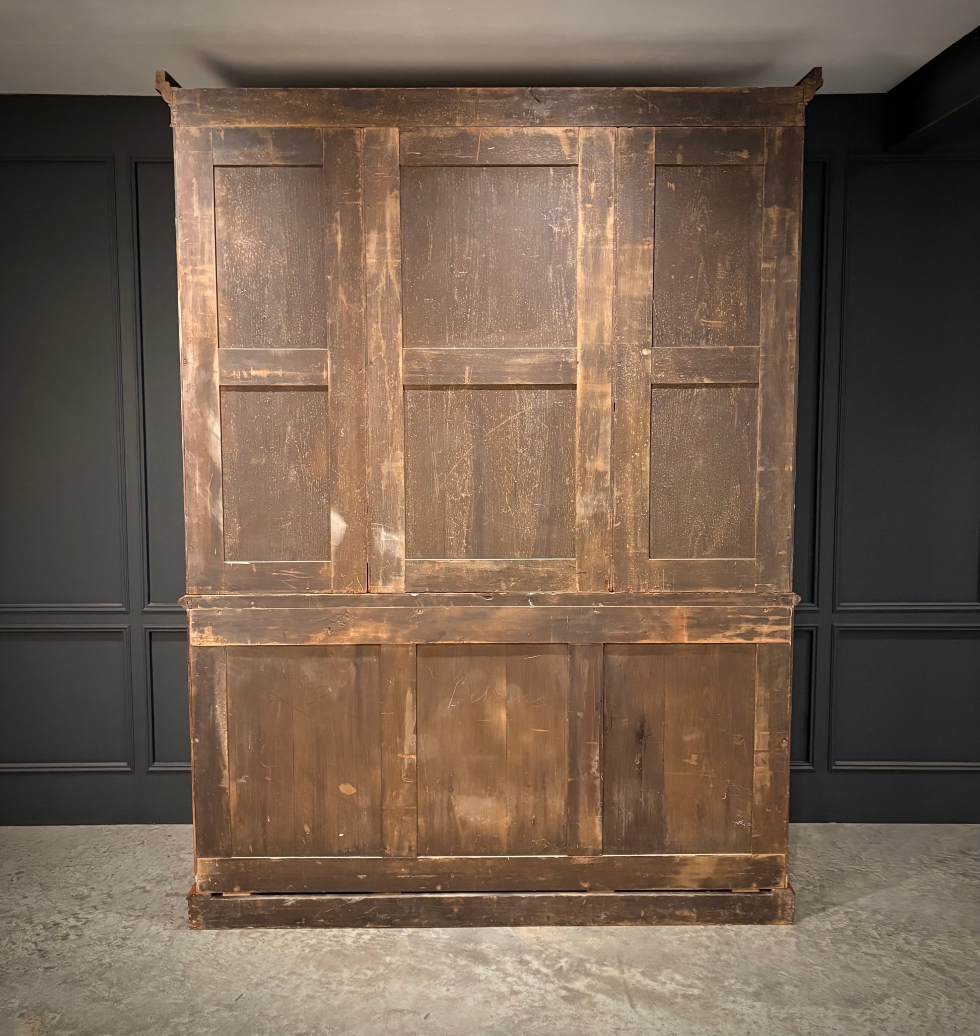 This is a large, high-quality and very heavy piece, but it can be taken apart for transport: cornice, three top sections, base, and plinth separate.