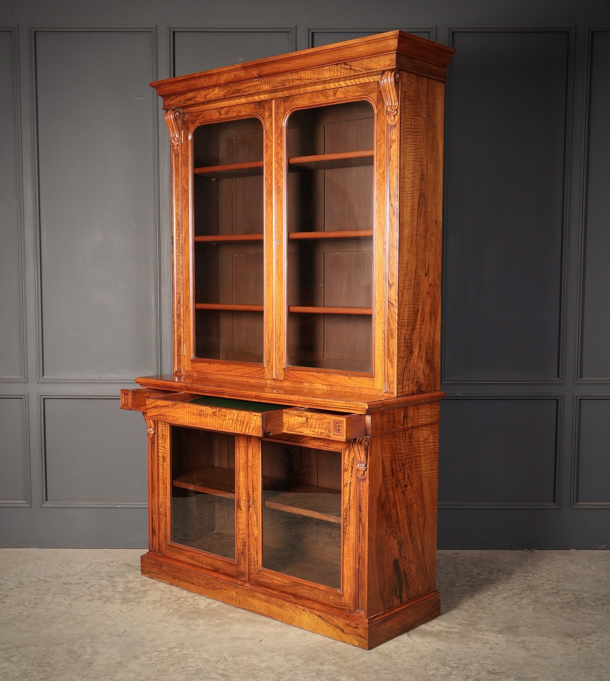 Fine William IV Walnut Glazed Bookcase