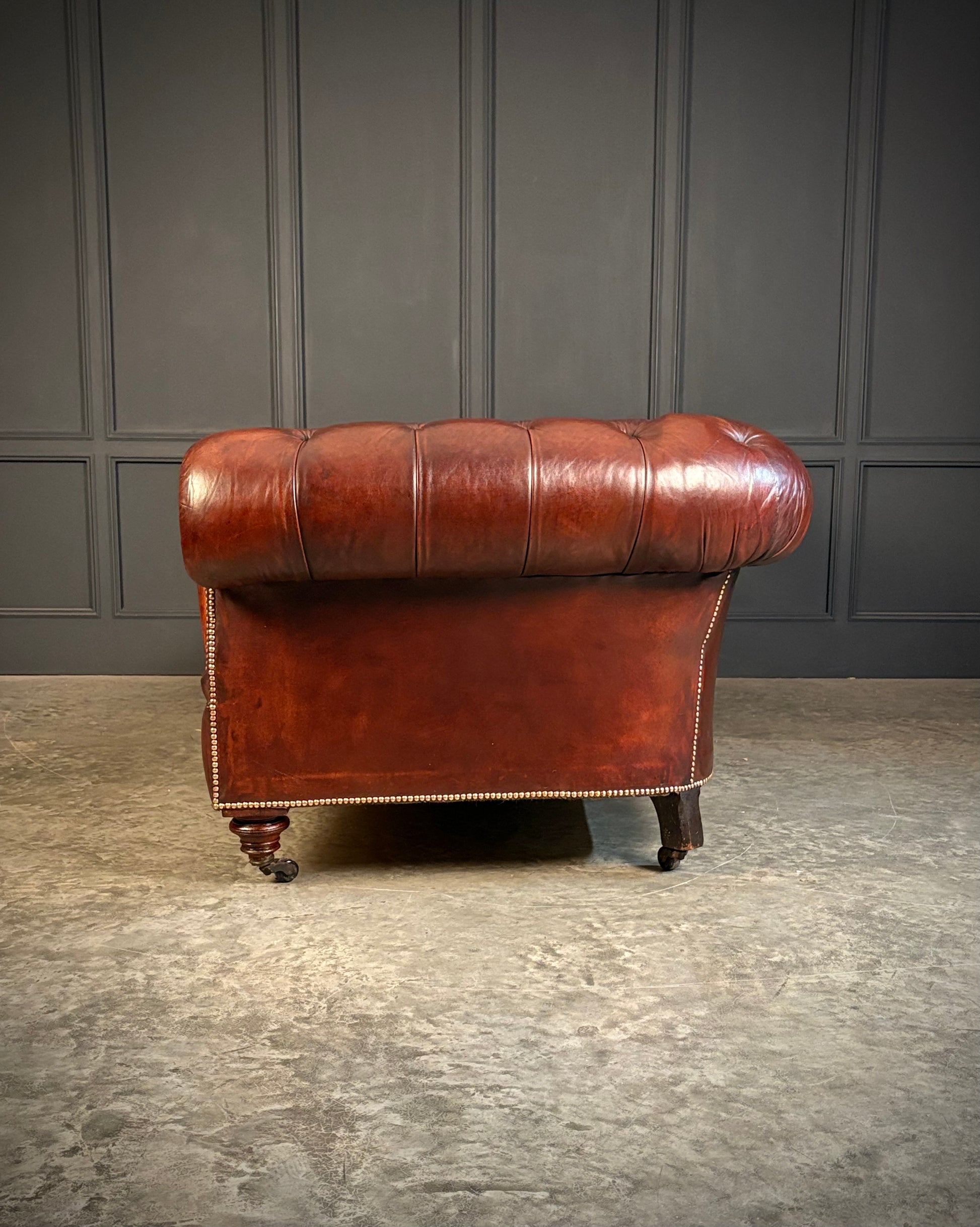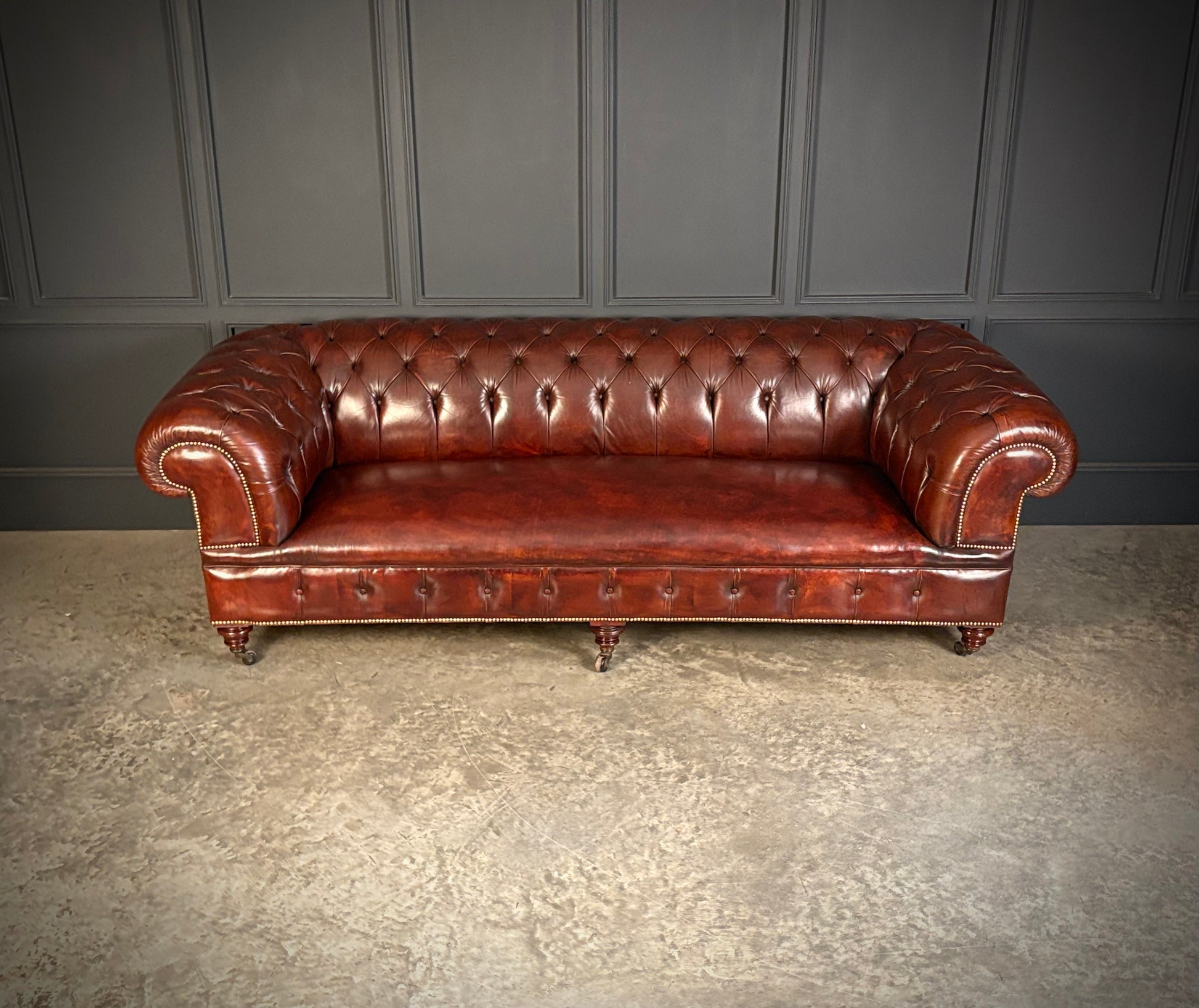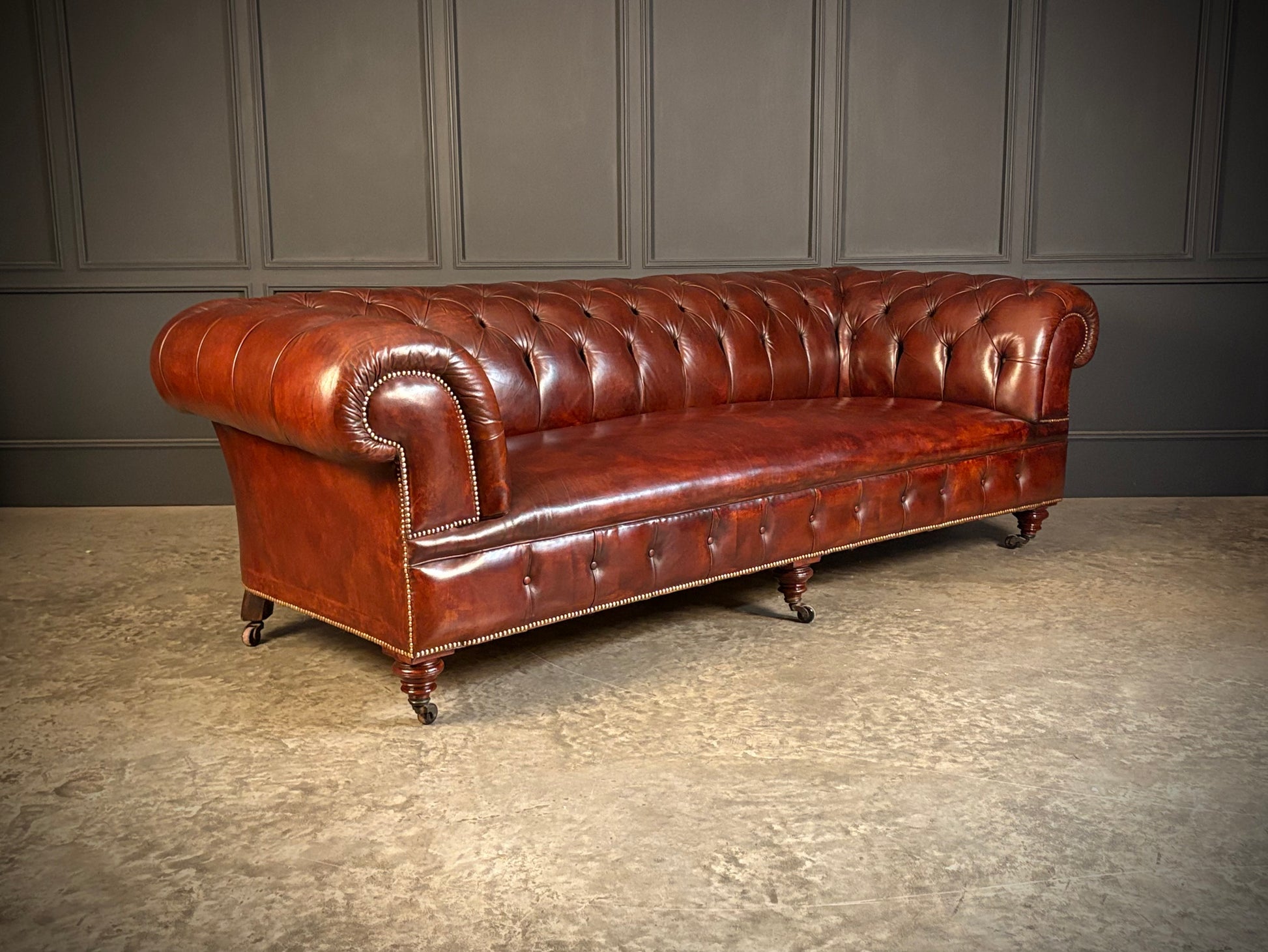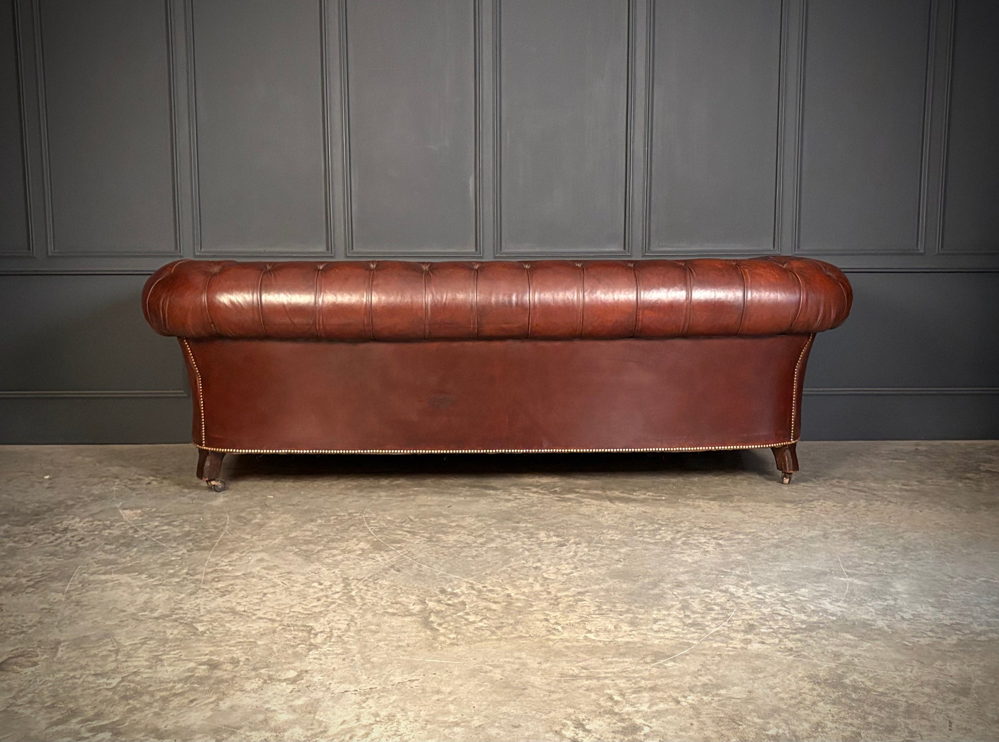 A superb large Victorian Chesterfield sofa, upholstered in beautifully hand-dyed brown leather with a rich, cigar brown colour.