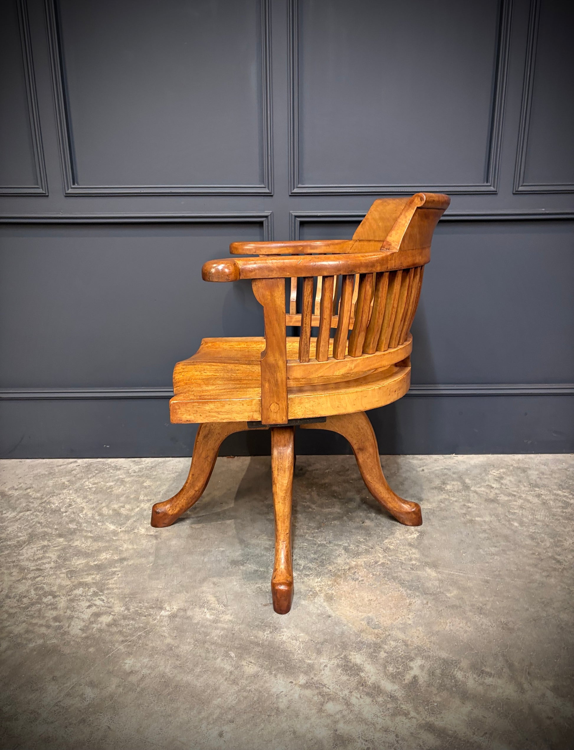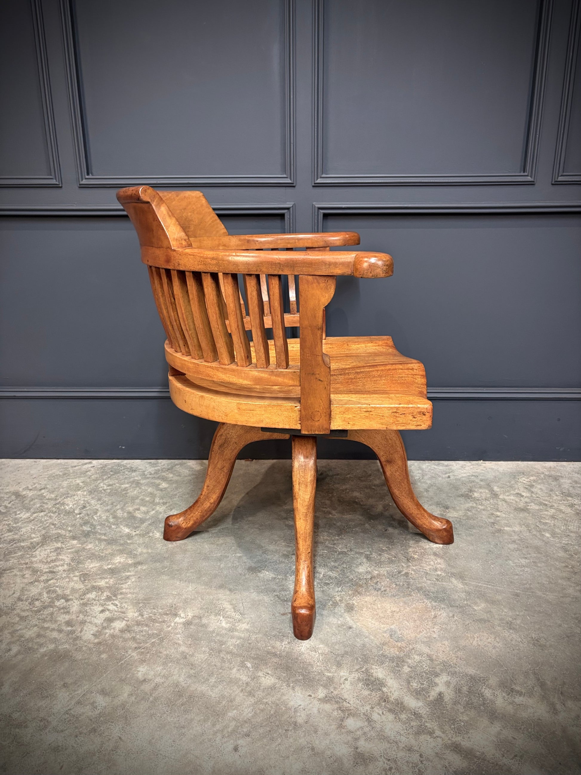 A lovely light mahogany swivel desk chair in excellent condition. Circa 1900.