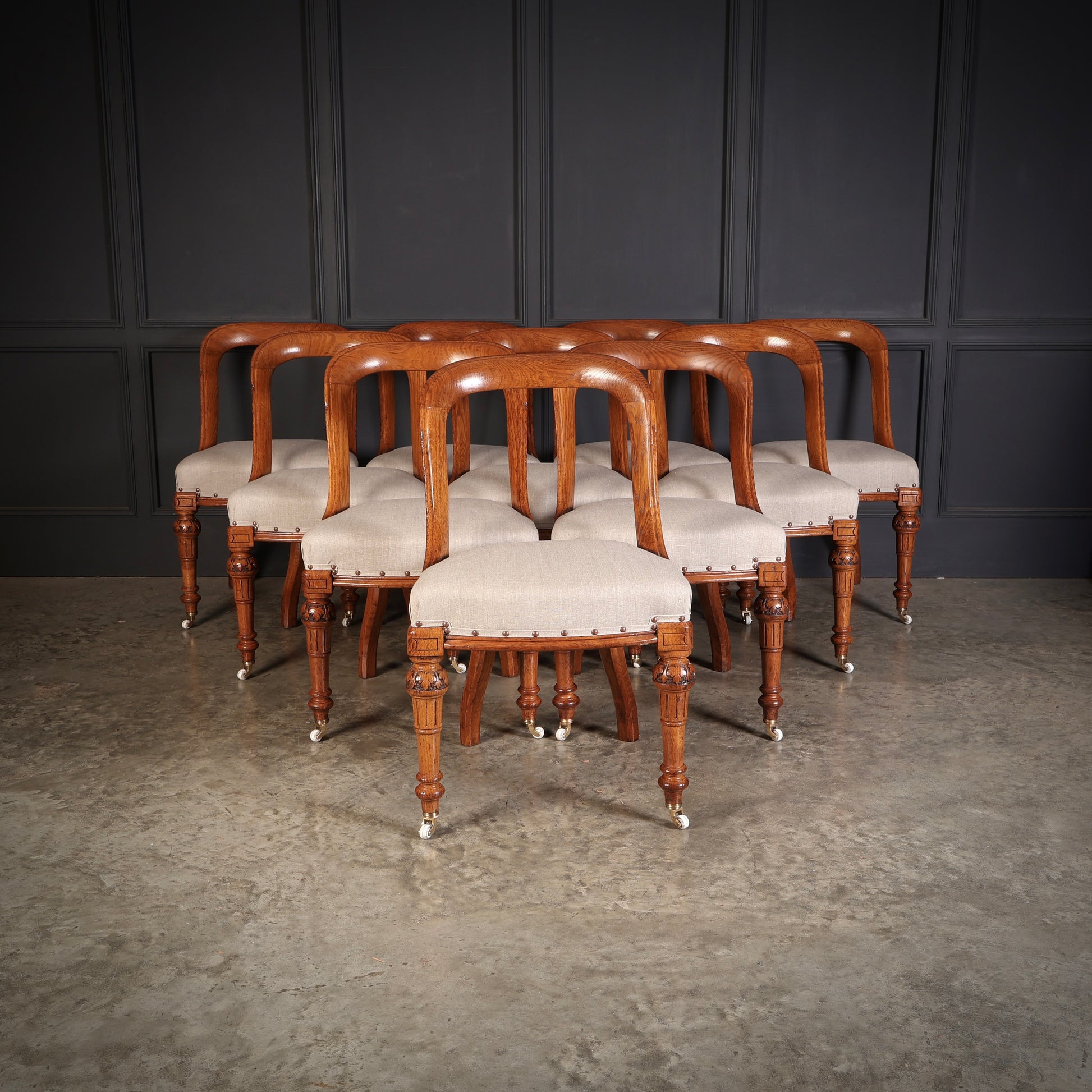 Magnificent Set of Ten Victorian Oak Dining Chairs