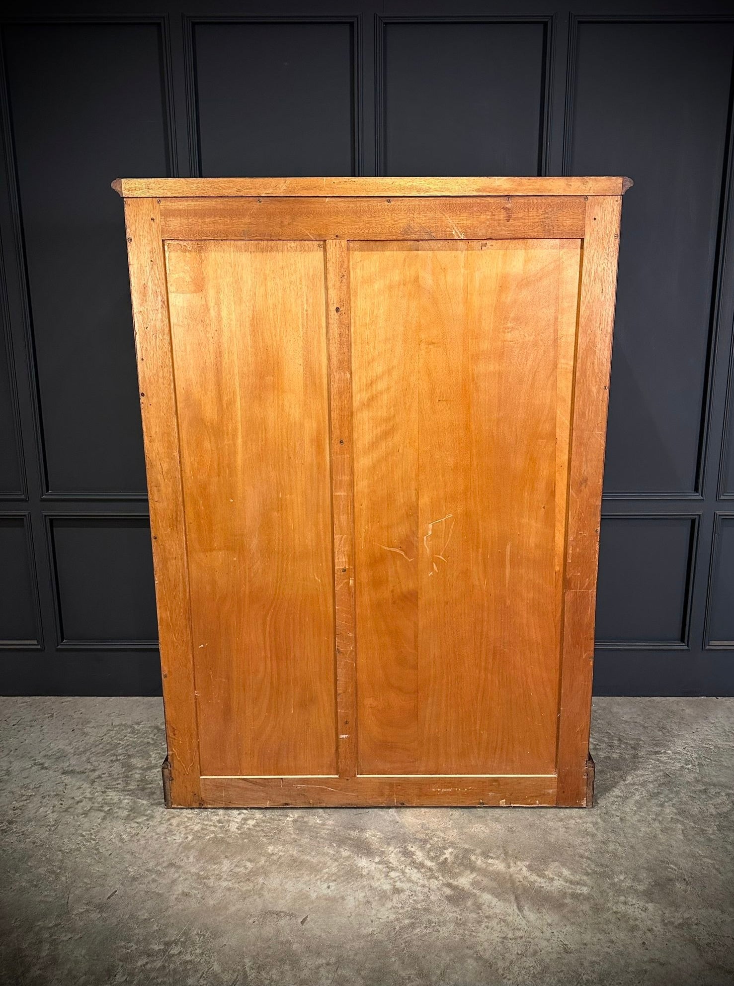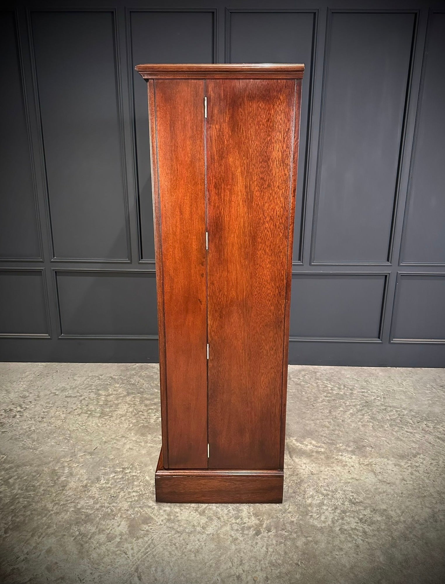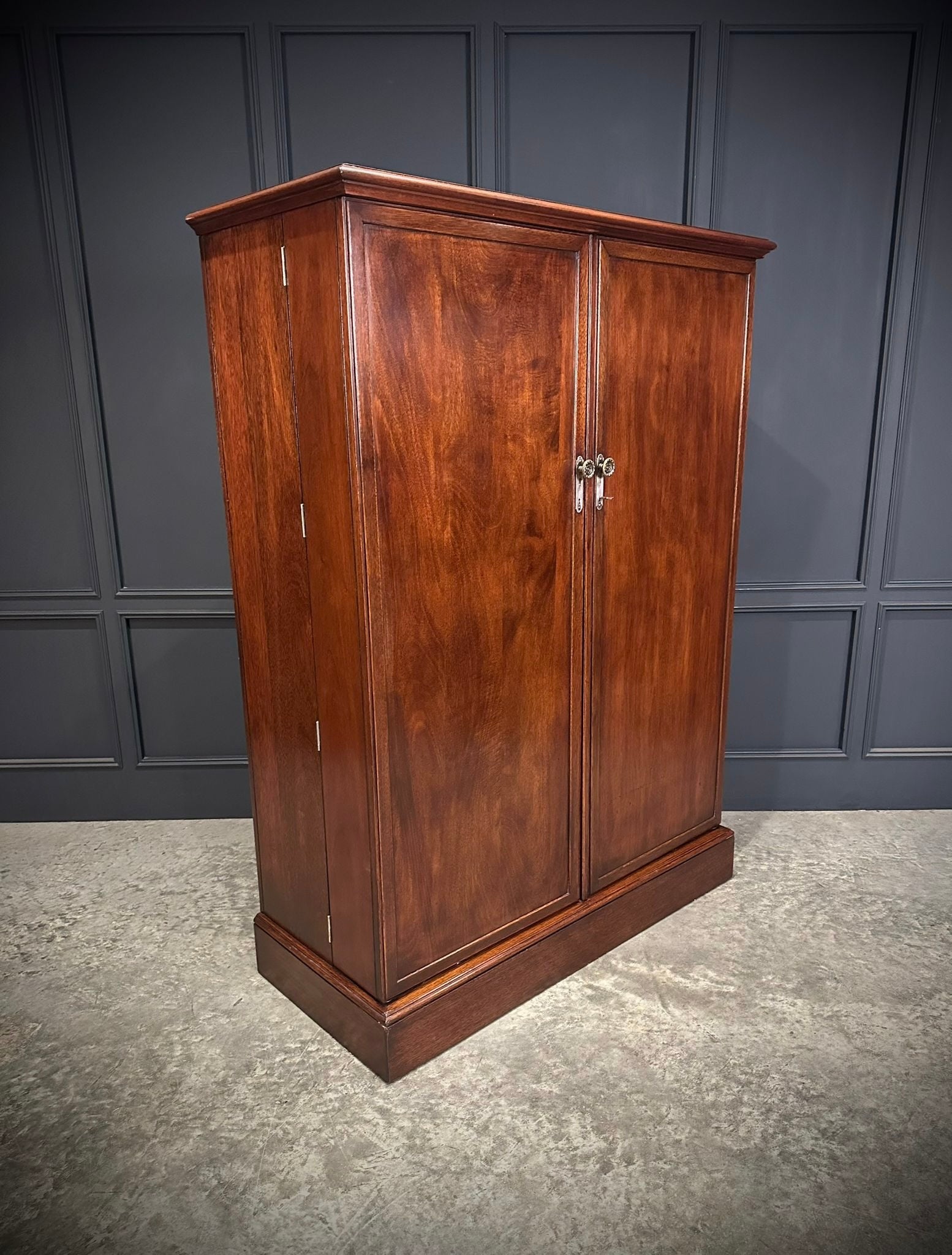 An excellent quality circa 1920 mahogany compactum wardrobe, beautifully proportioned and finished with notably deep, clean panelled doors, allowing for generous and practical storage. The wardrobe has been professionally repolished and now presents in excellent condition, with a rich colour and attractive grain throughout.