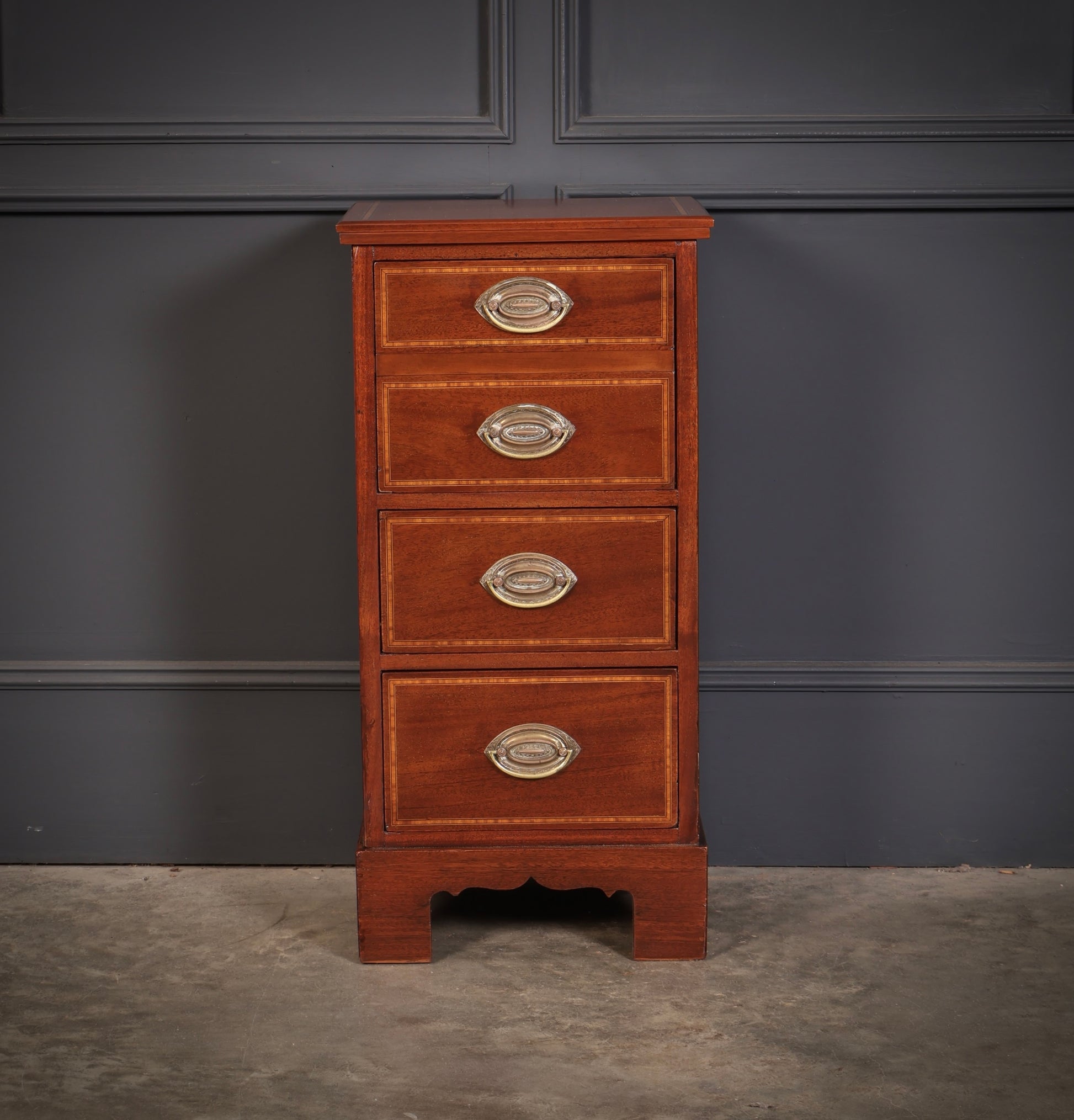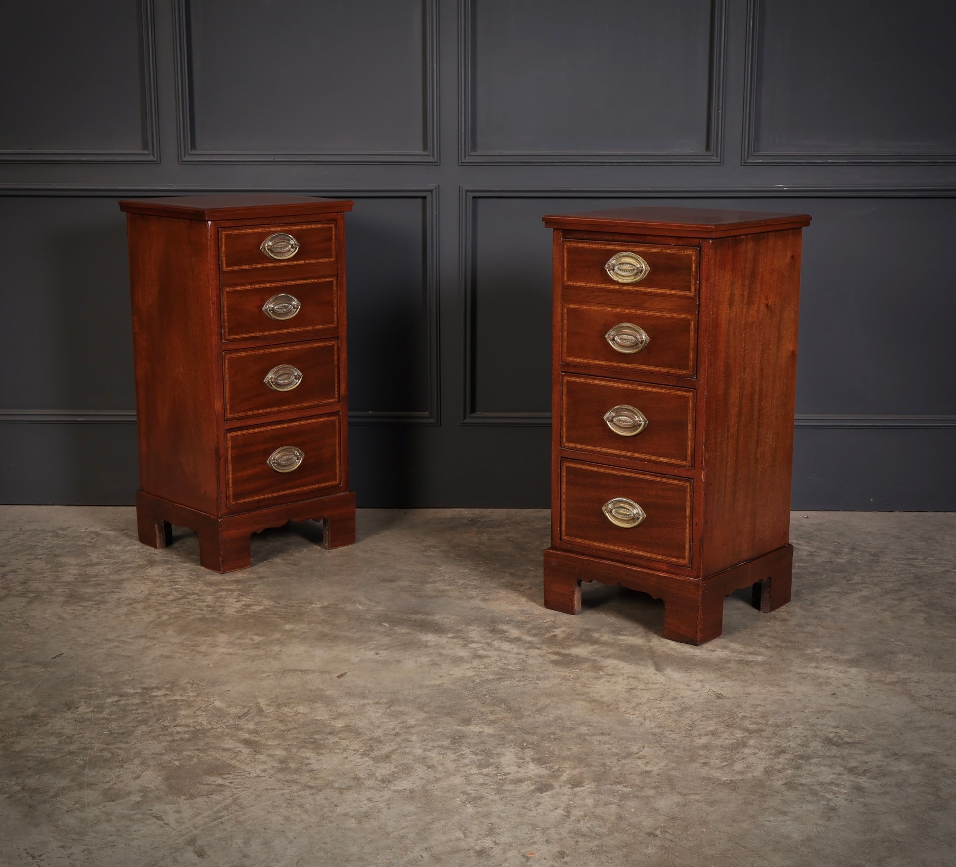 A handsome pair of mahogany bedside chests, each finely constructed and inlaid with satinwood banding.
