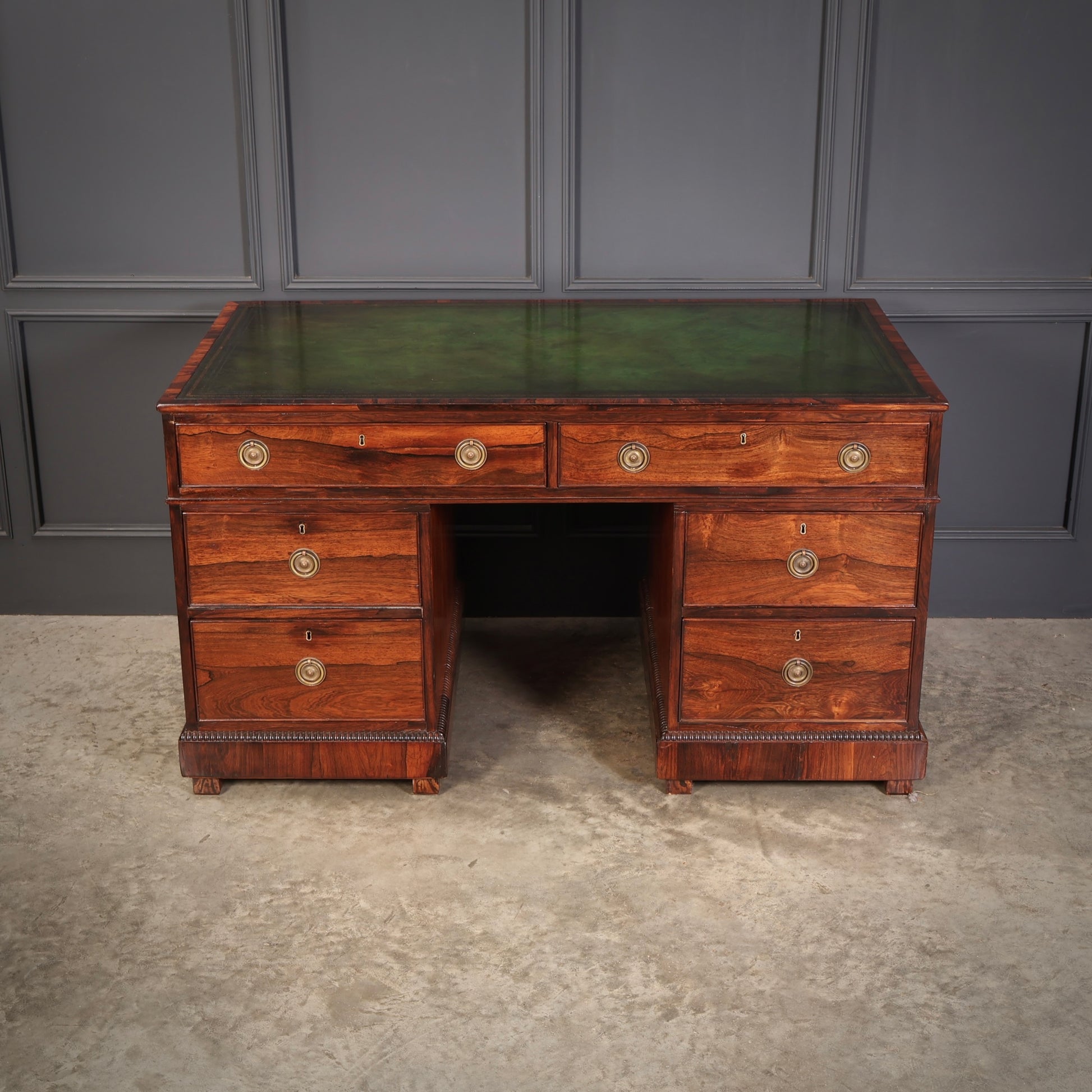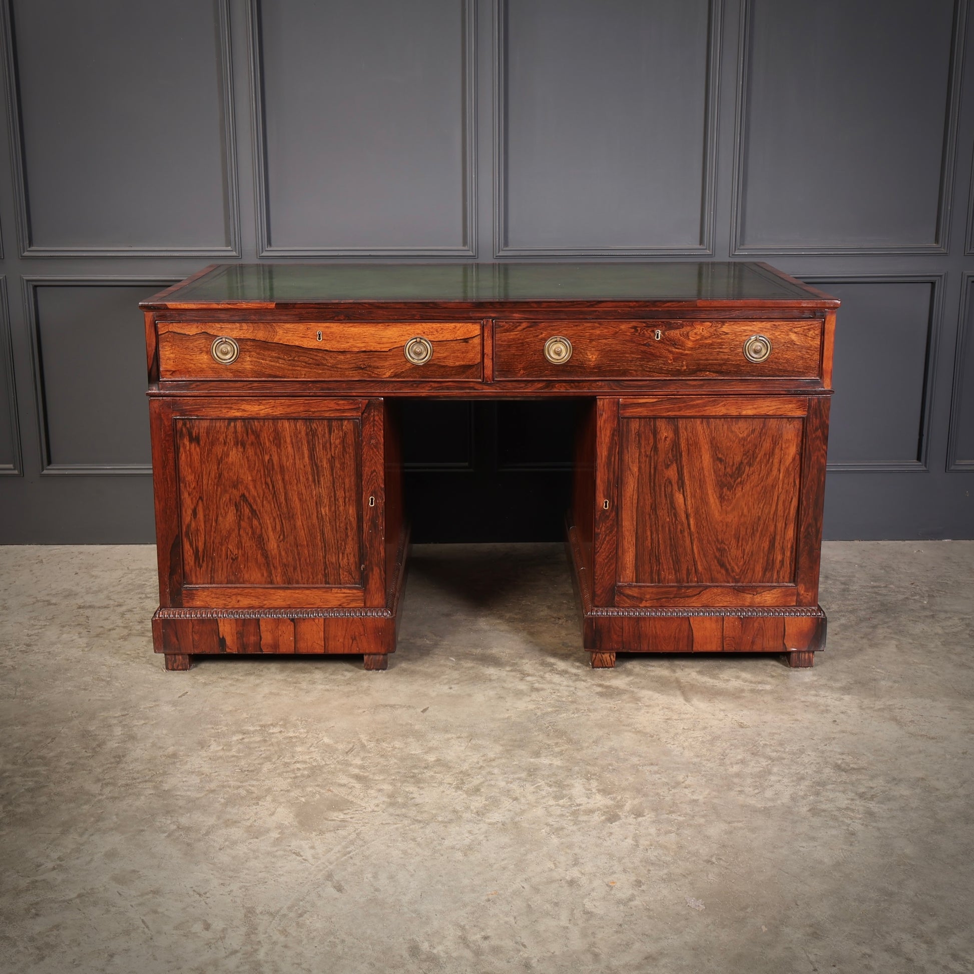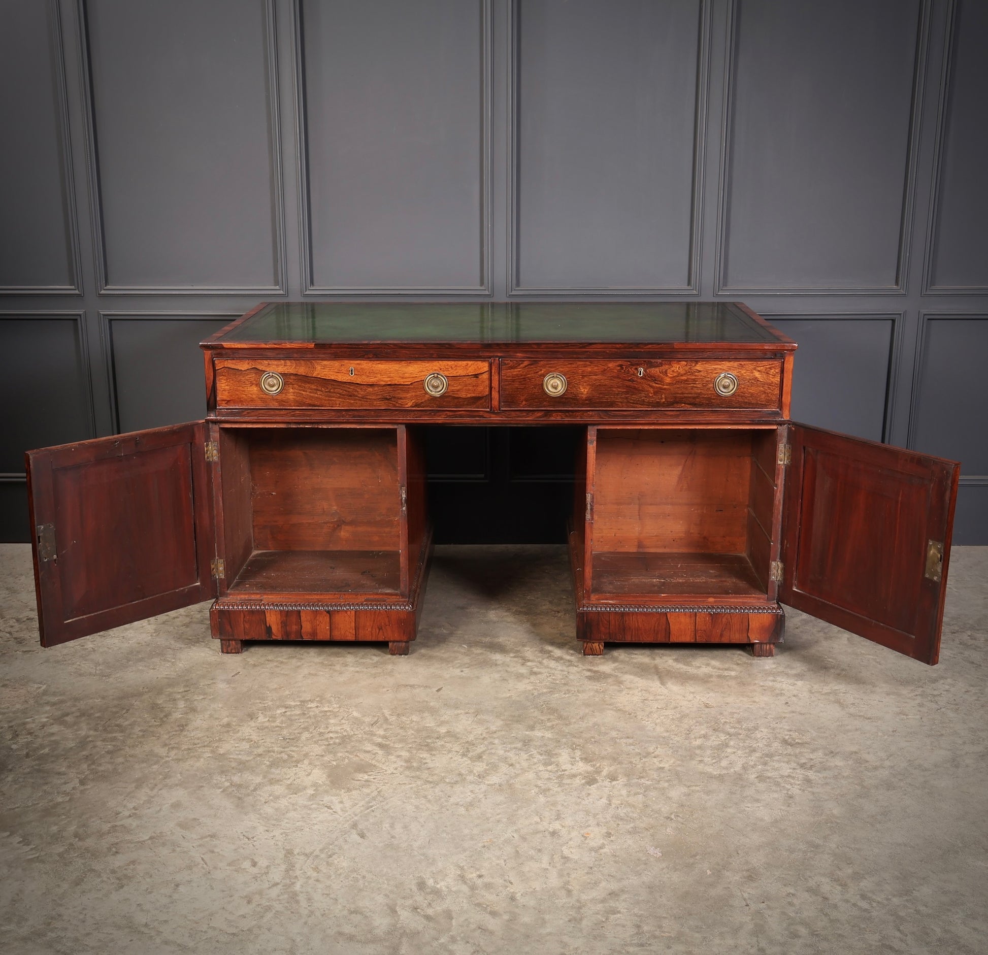 This exceptional and rare William IV rosewood partners desk is a true statement piece of refined English craftsmanship, dating from the early 19th century. Presented in superb showroom condition and constructed in a beautiful rich rosewood.