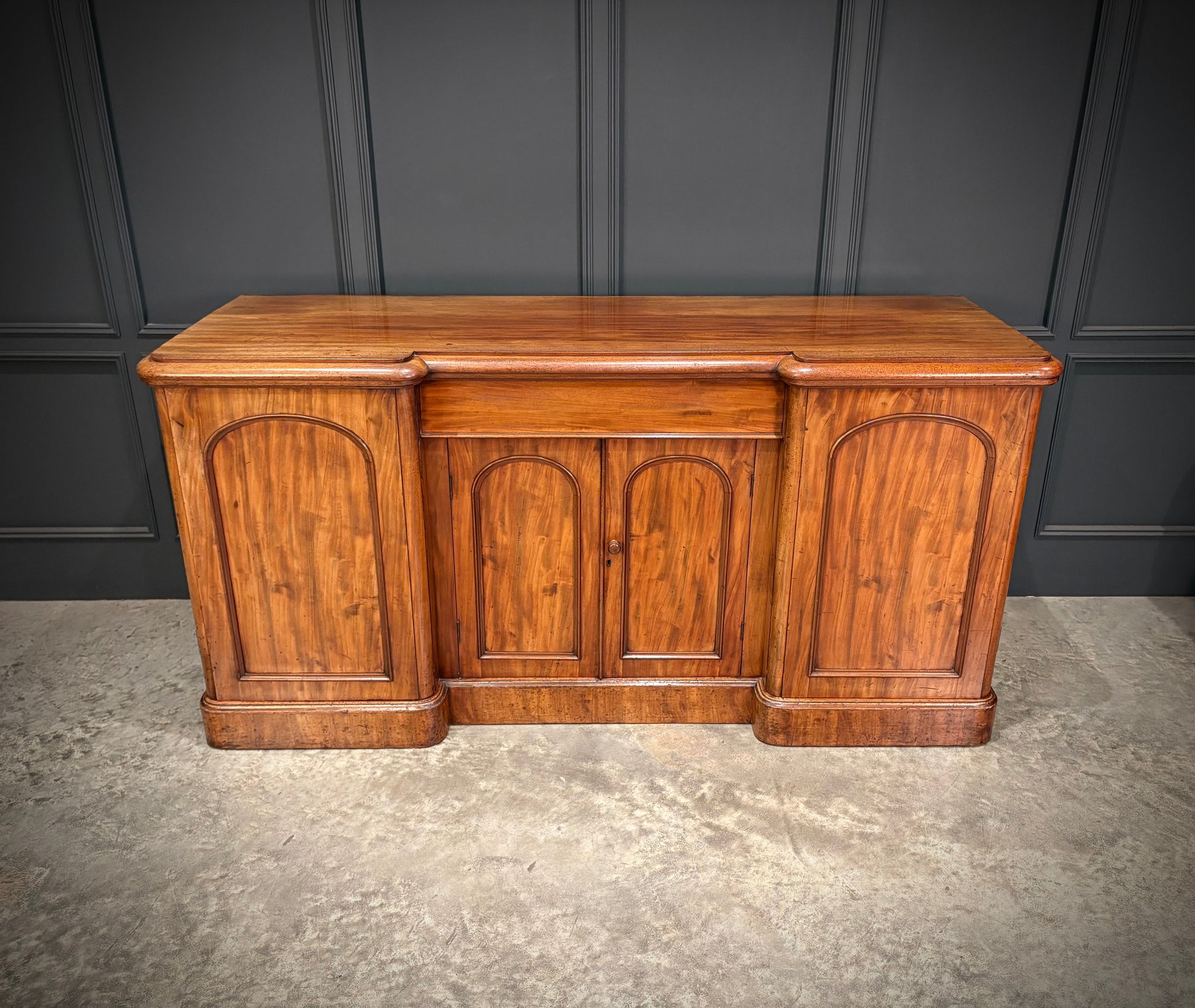 A beautifully proportioned Victorian sideboard crafted from richly figured flame mahogany.