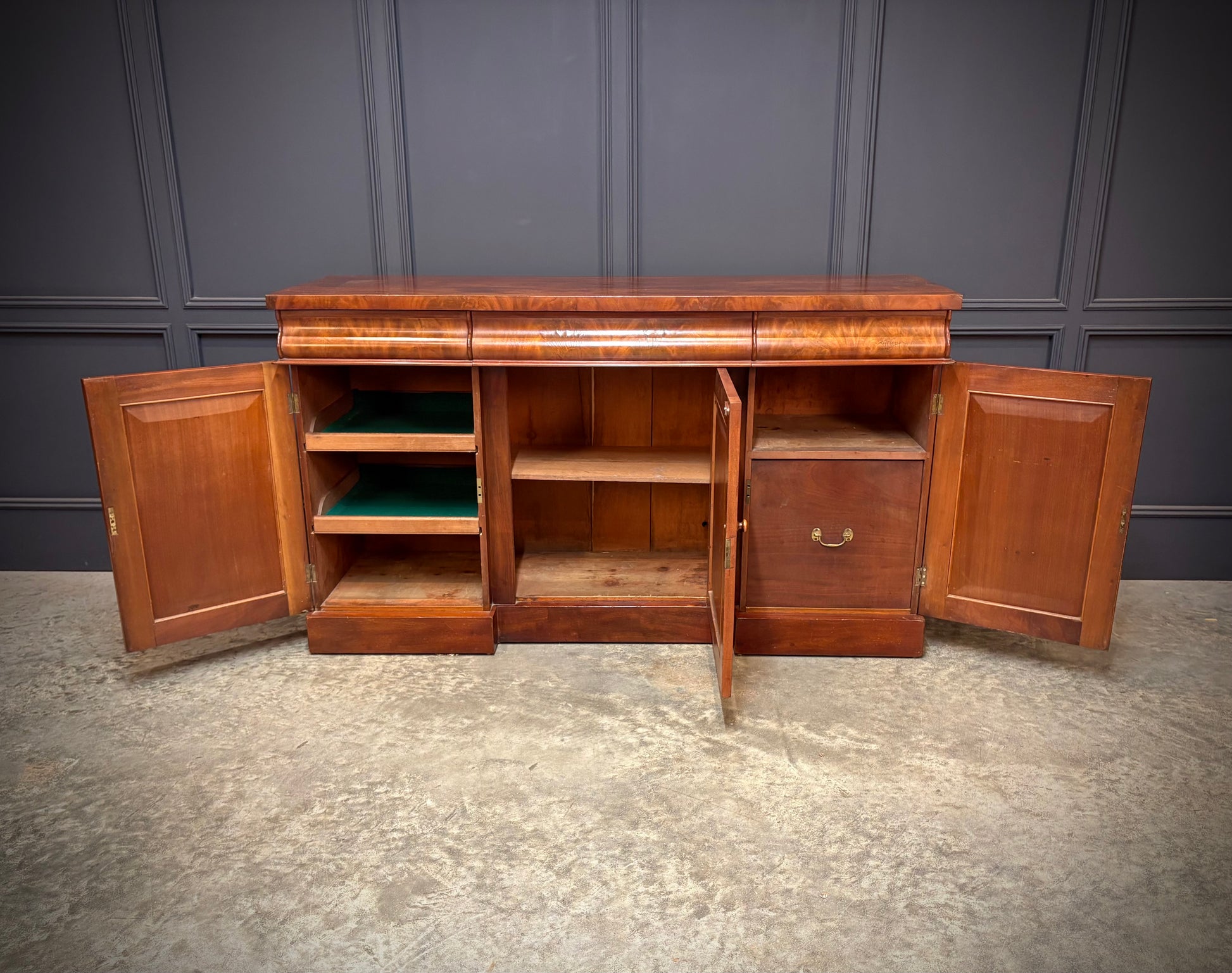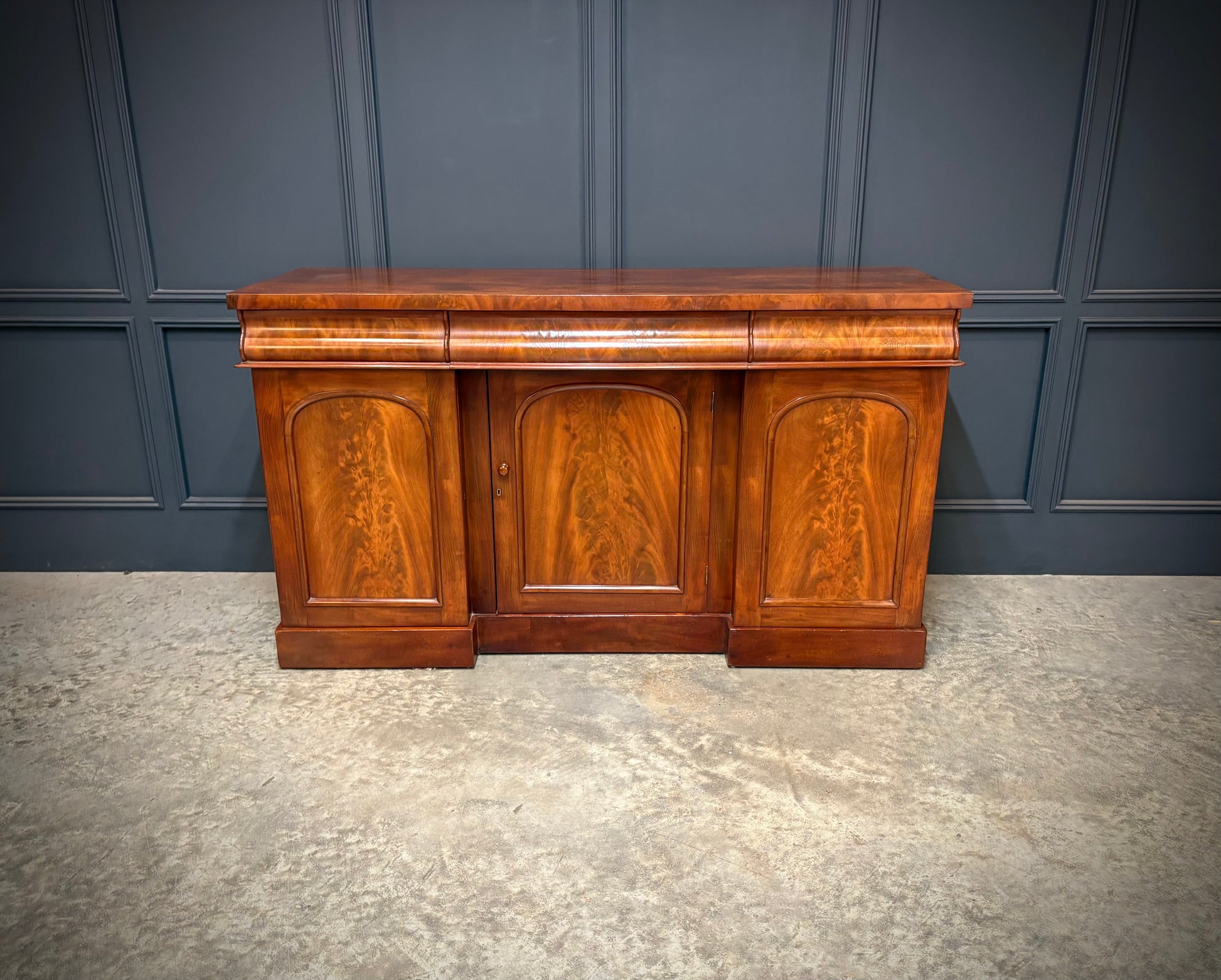 Beautifully figured mahogany with a good colour, all set on a plinth base.