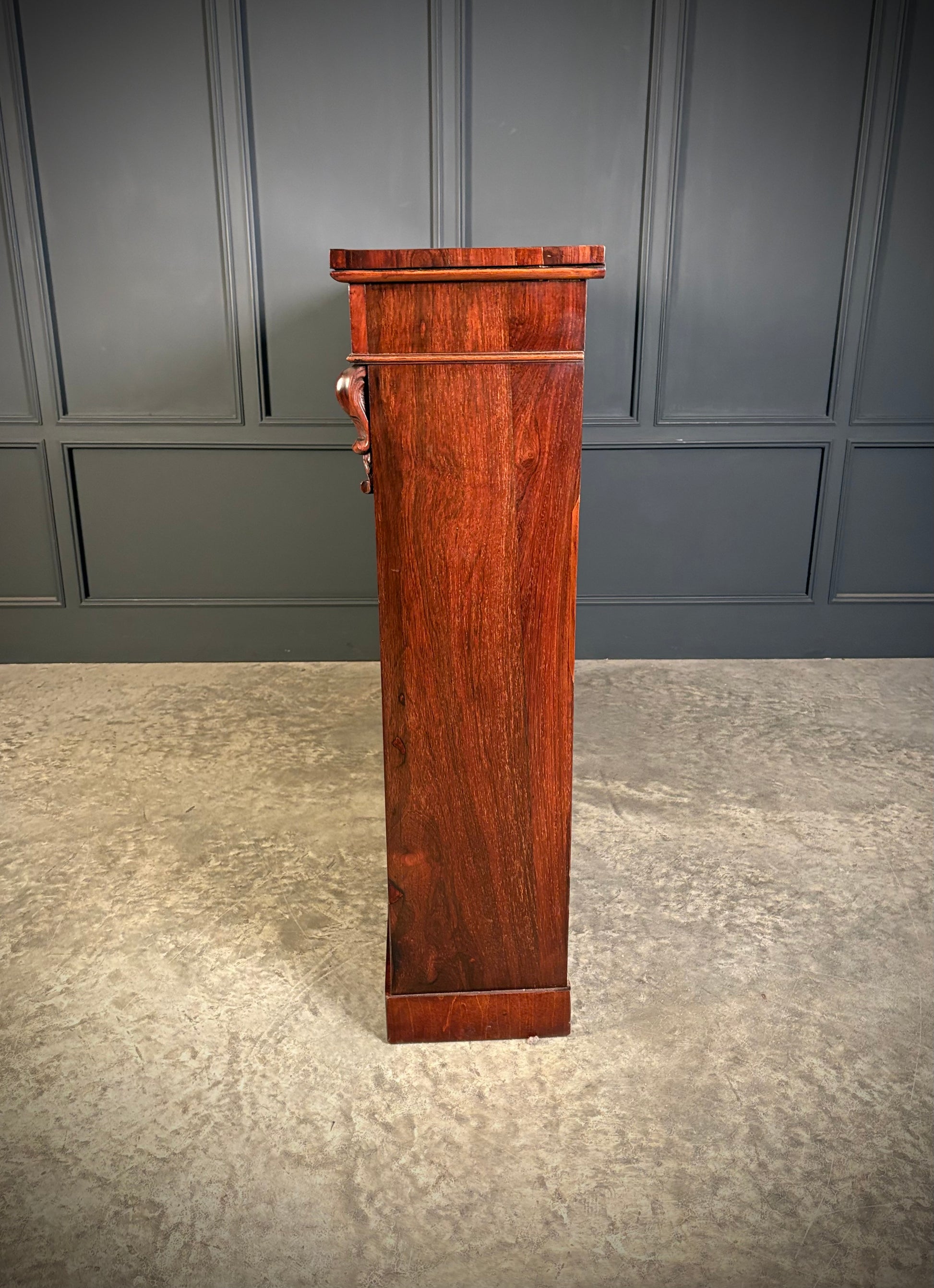 The rosewood exhibits a warm, attractive grain throughout, and the piece stands on a sturdy plinth base.
