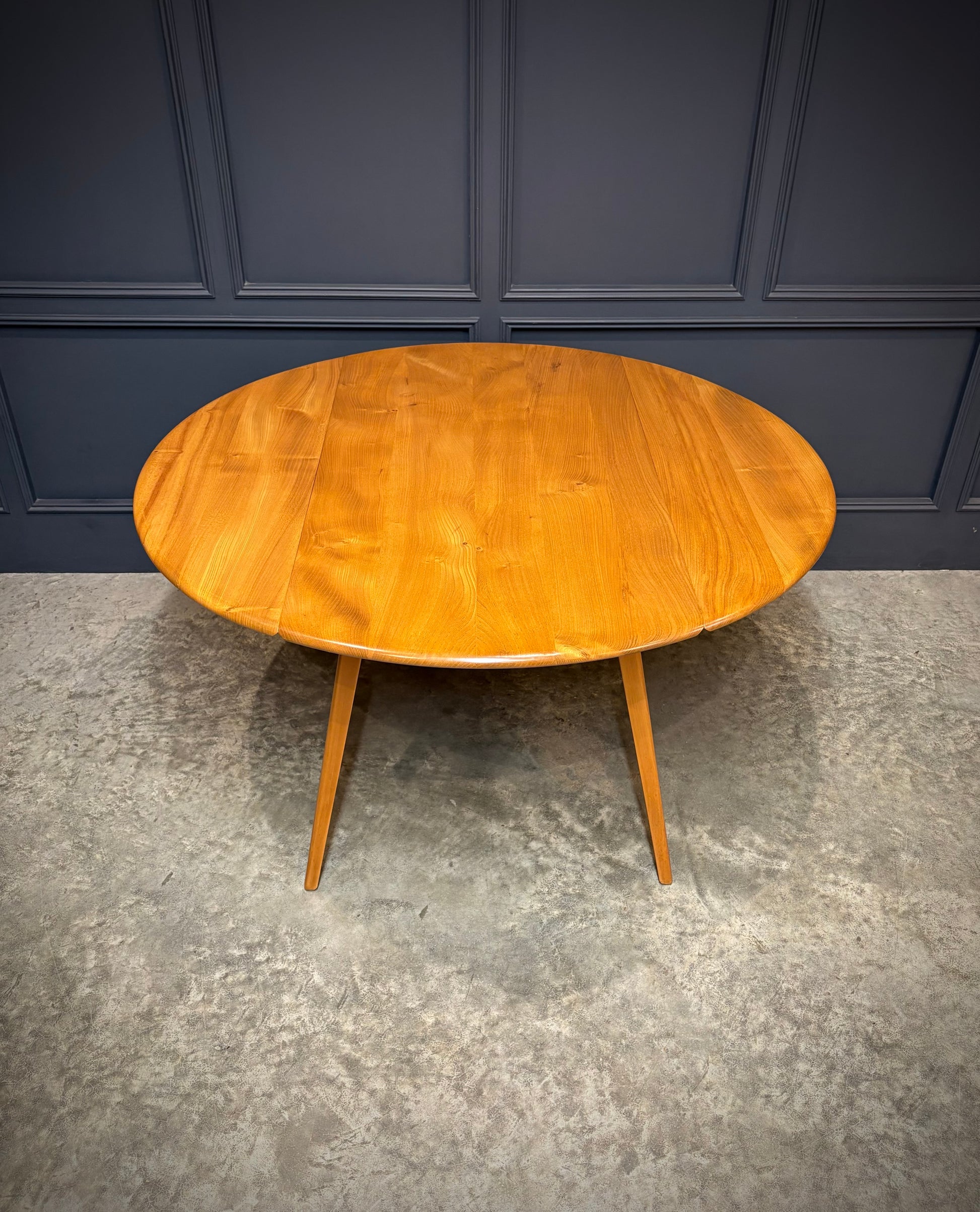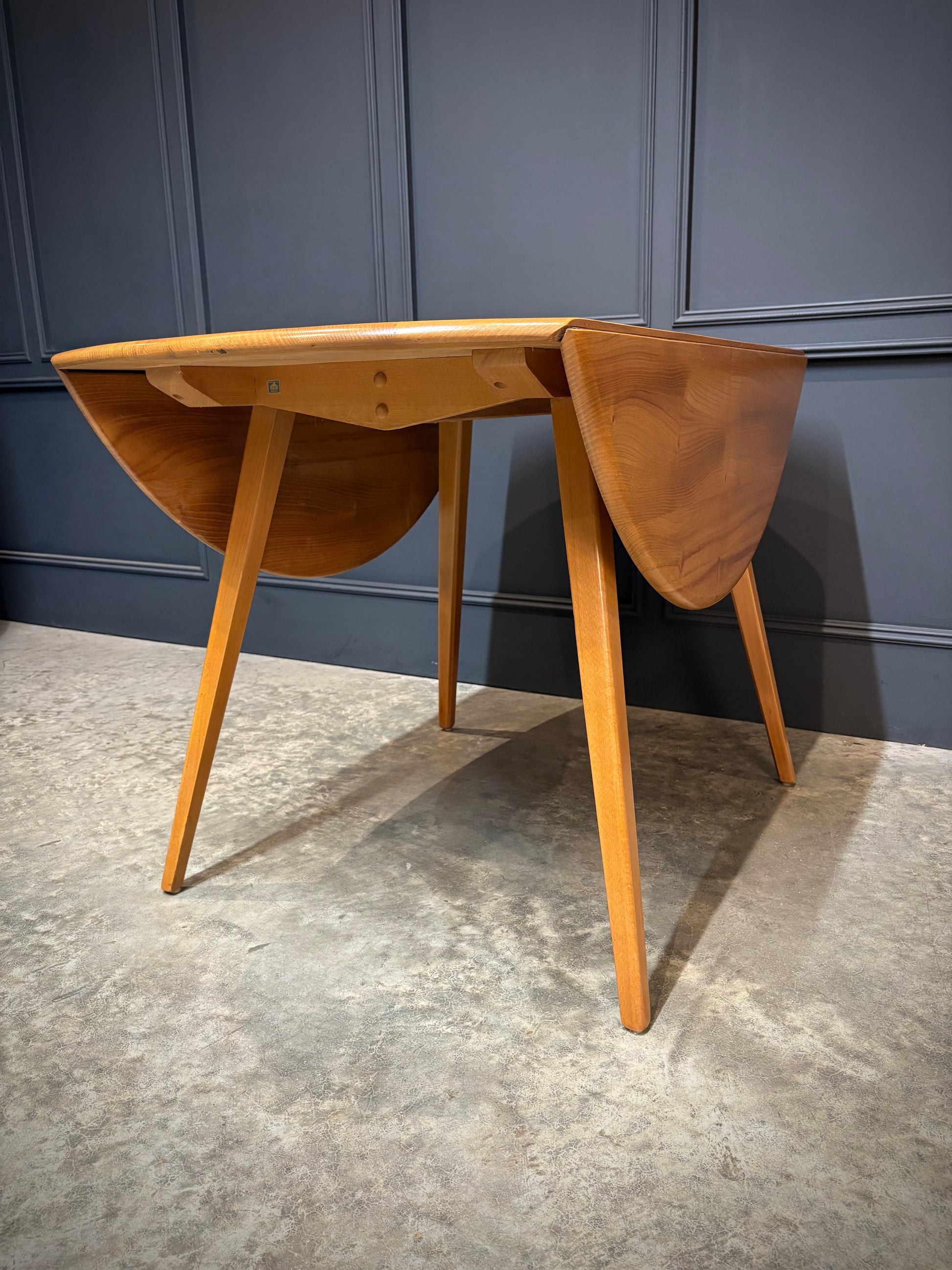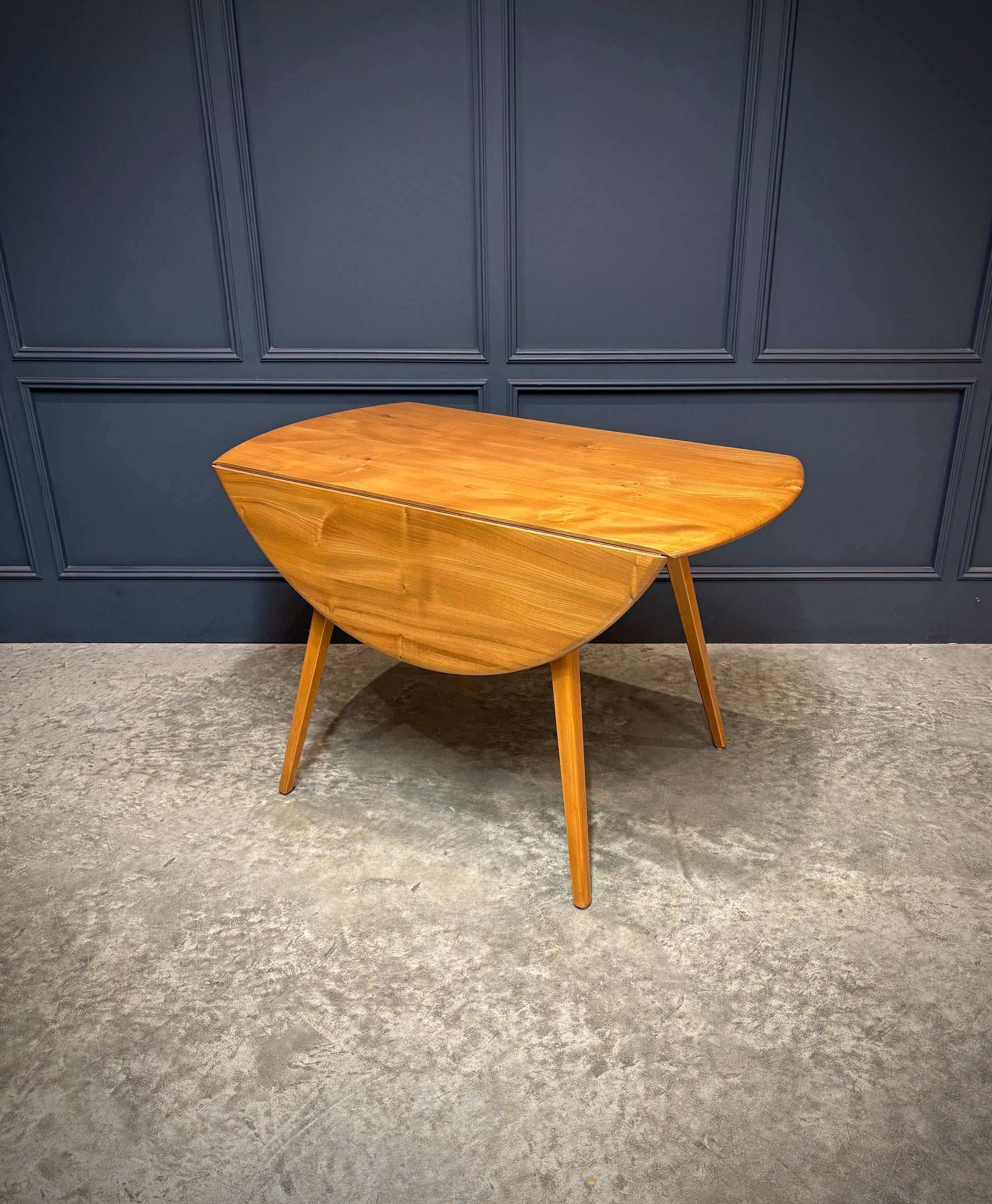 This beautifully restored vintage Ercol drop leaf dining table is a timeless piece of mid-century British design, showcasing the exceptional craftsmanship and elegant simplicity for which Ercol is renowned. Crafted from solid elm and beech, the table has been fully refurbished to an as-new condition, bringing out the natural beauty of the wood grain while preserving its original character.