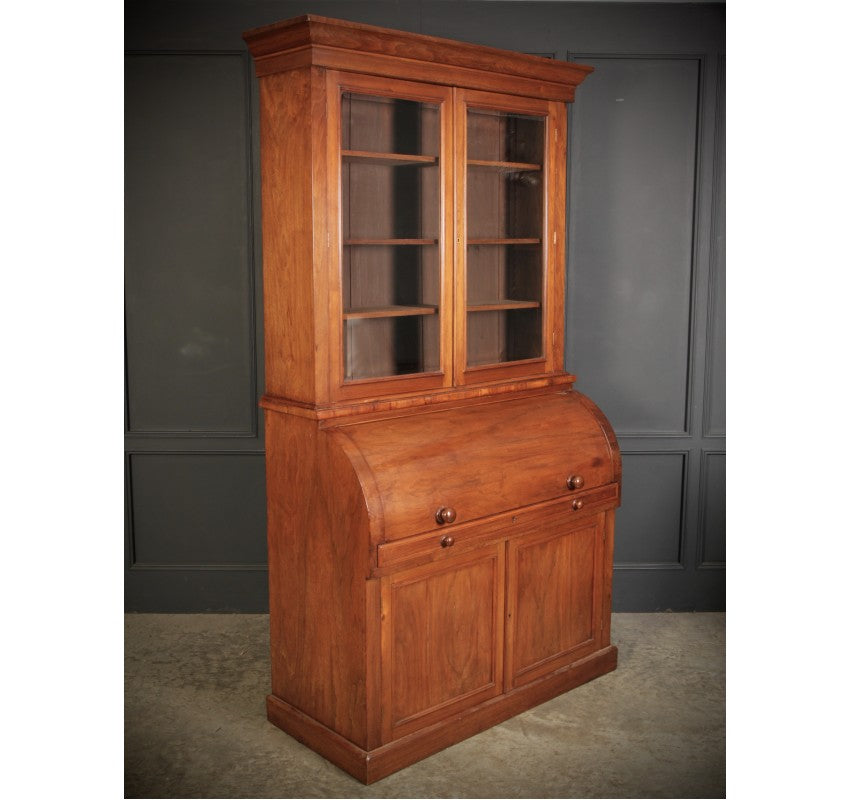 Elegant and functional, this walnut cylinder bureau bookcase exudes timeless craftsmanship.
